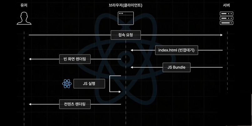 - 클라이언트(브라우저)에서 직접 화면을 렌더링하는 방식